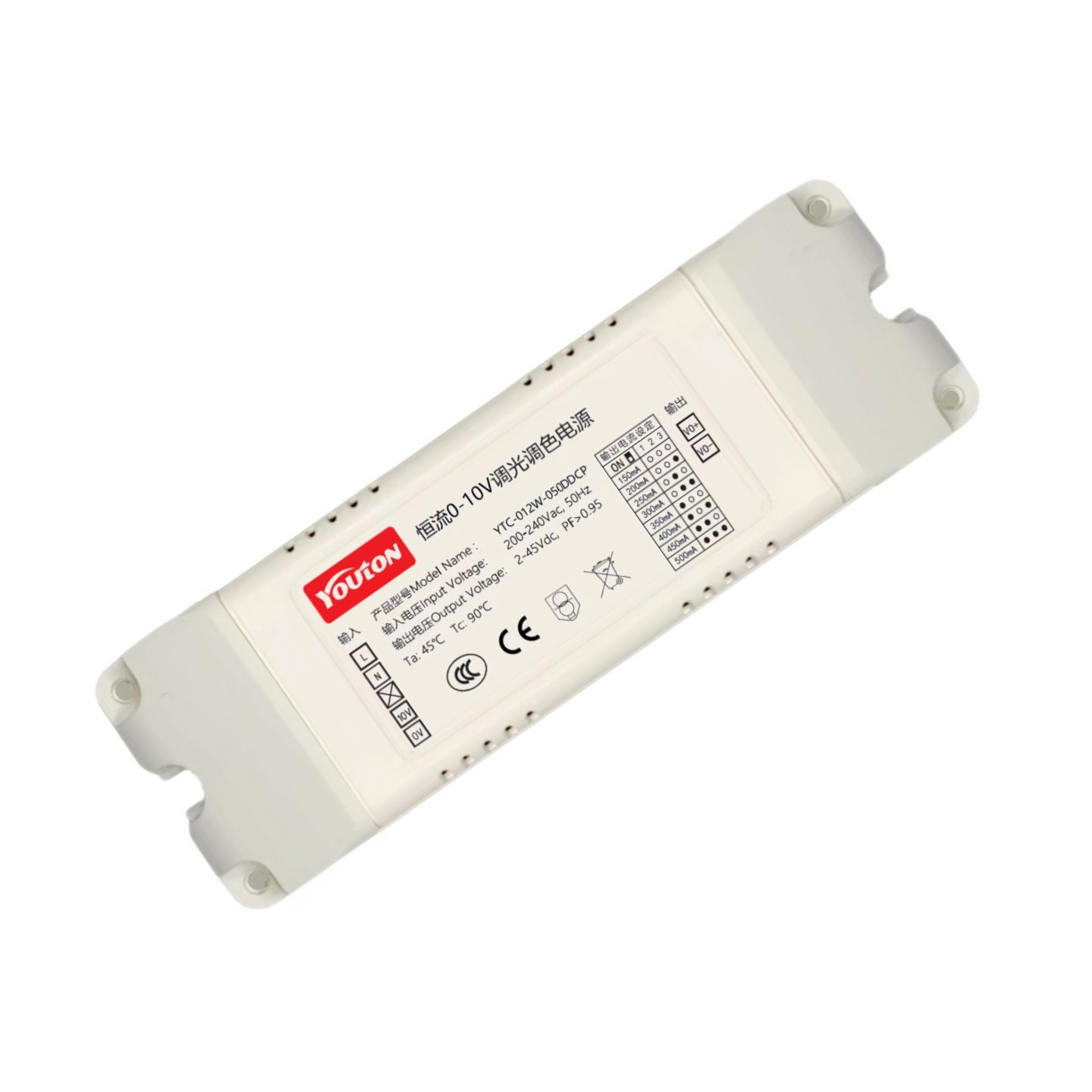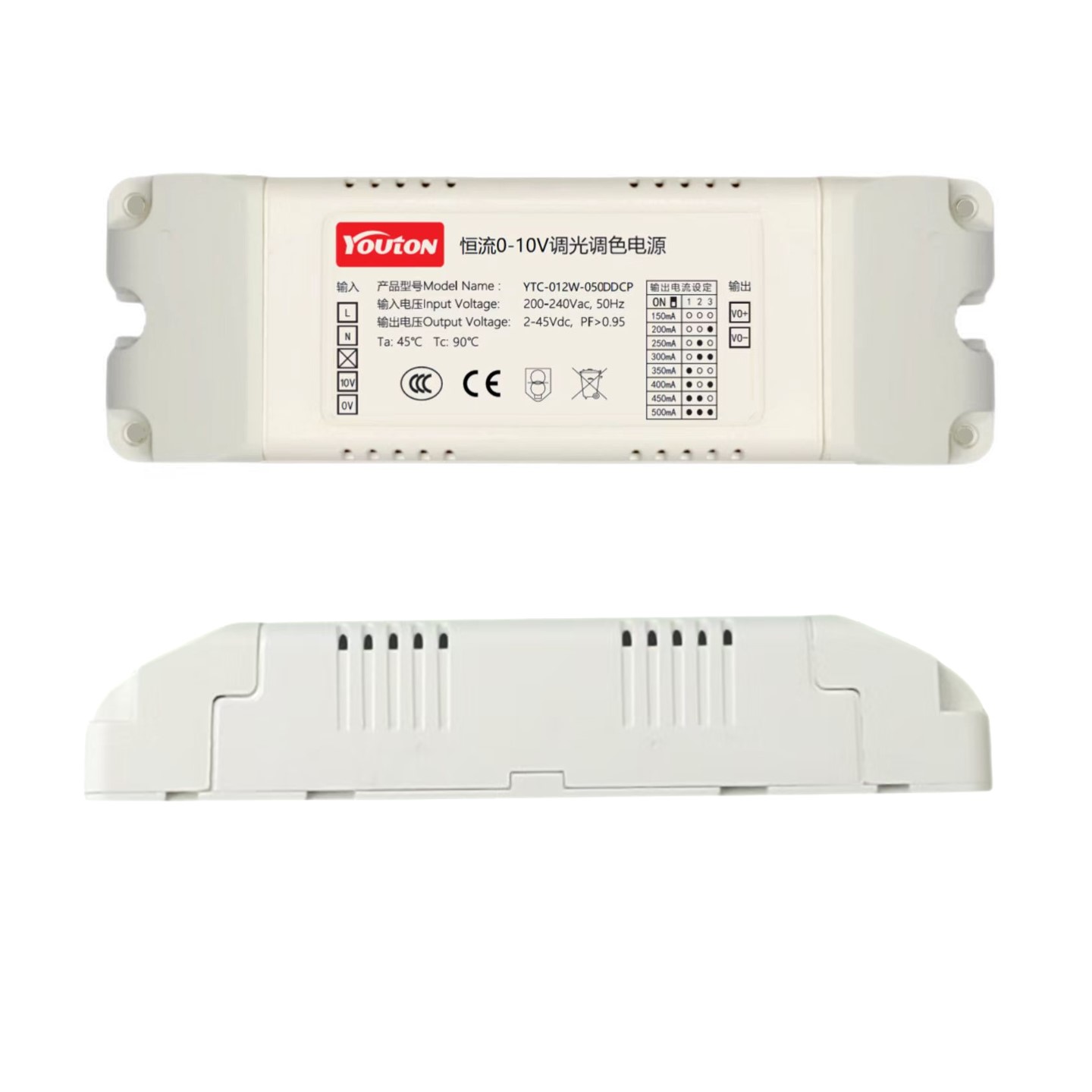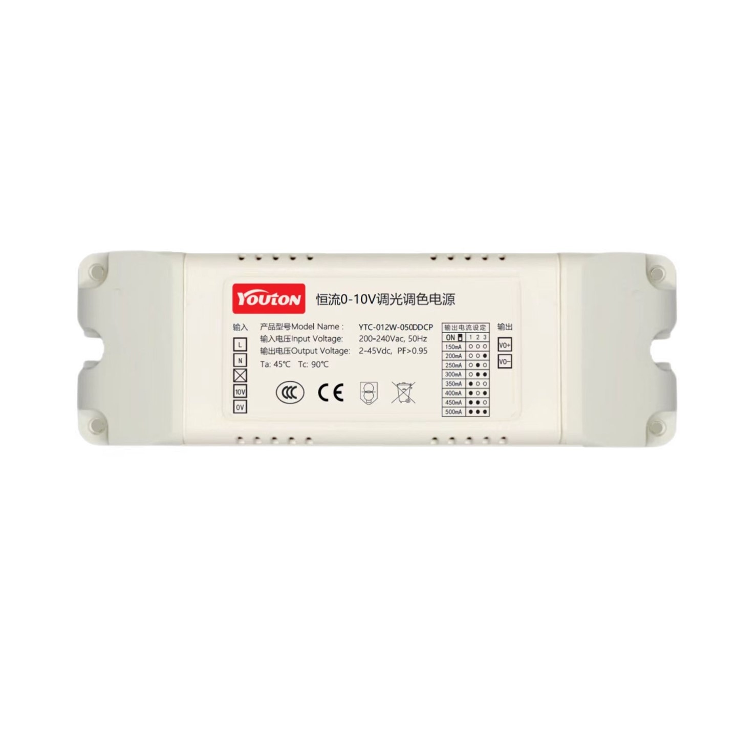 0-10V一体式恒流调光电源,具有驱动和调光/调色的功能, 用于恒流灯具实现亮度和色温的变化控制。
