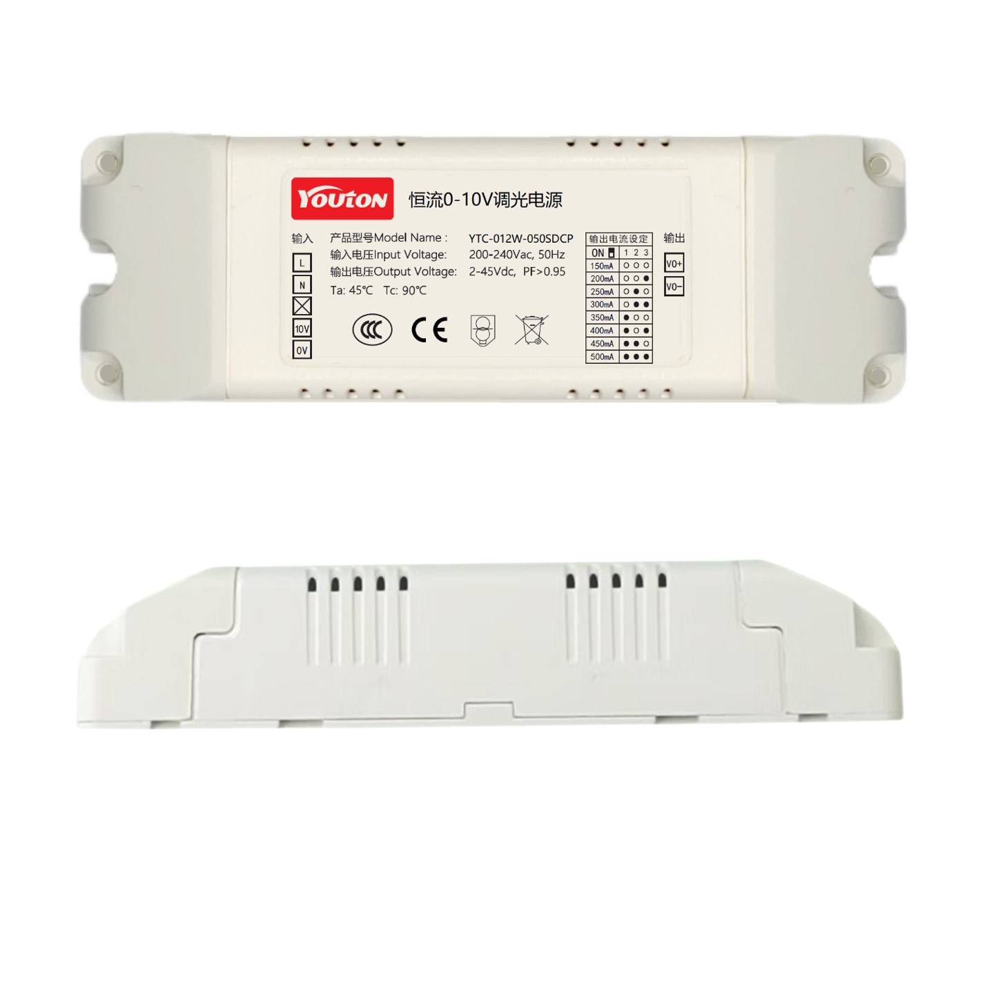 0-10V一体式恒流调光电源,具有驱动和调光/调色的功能, 用于恒流灯具实现亮度和色温的变化控制。