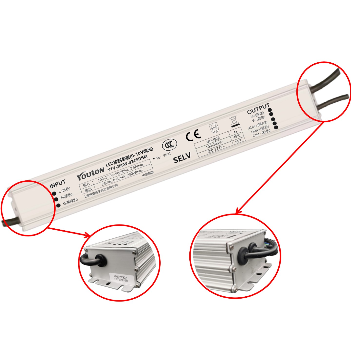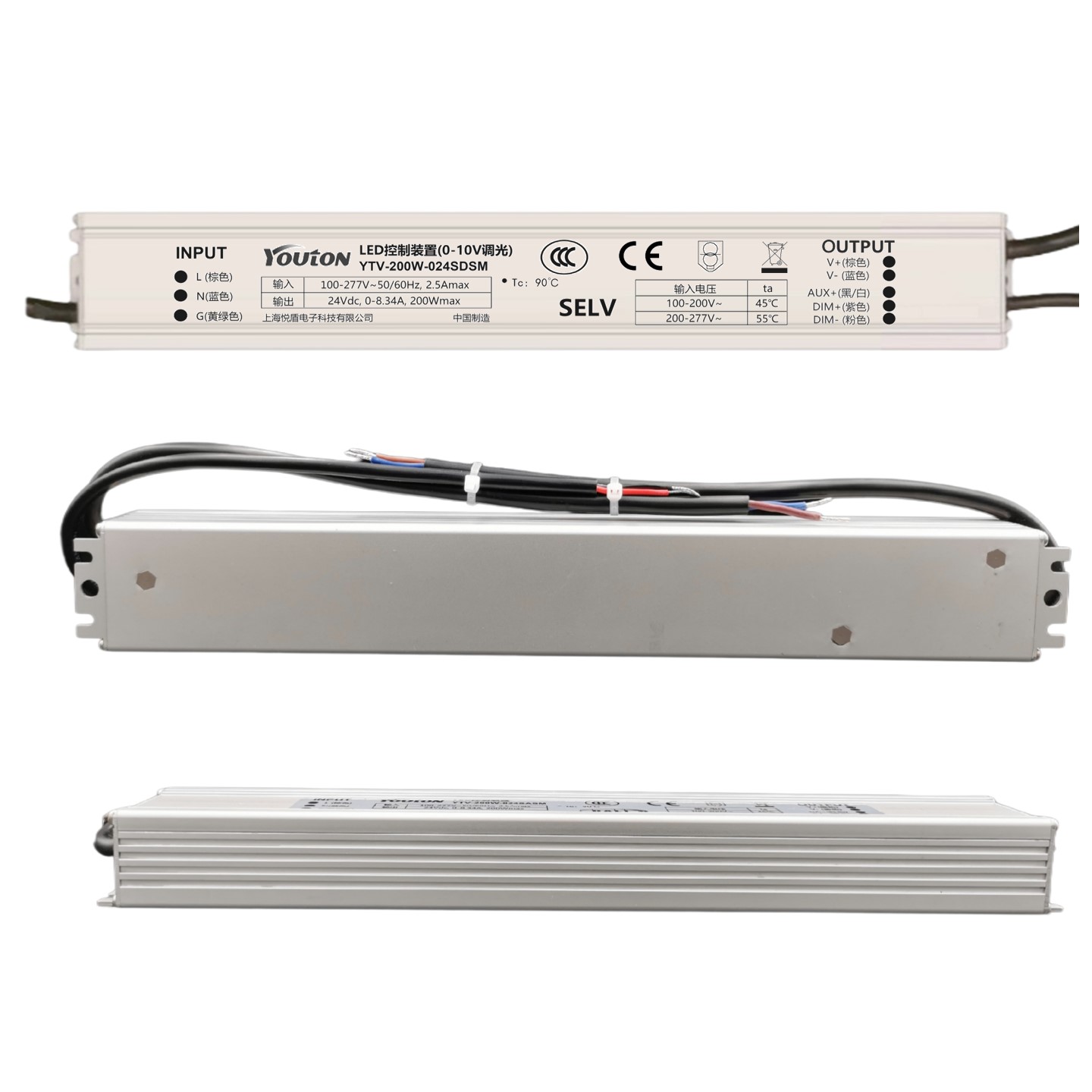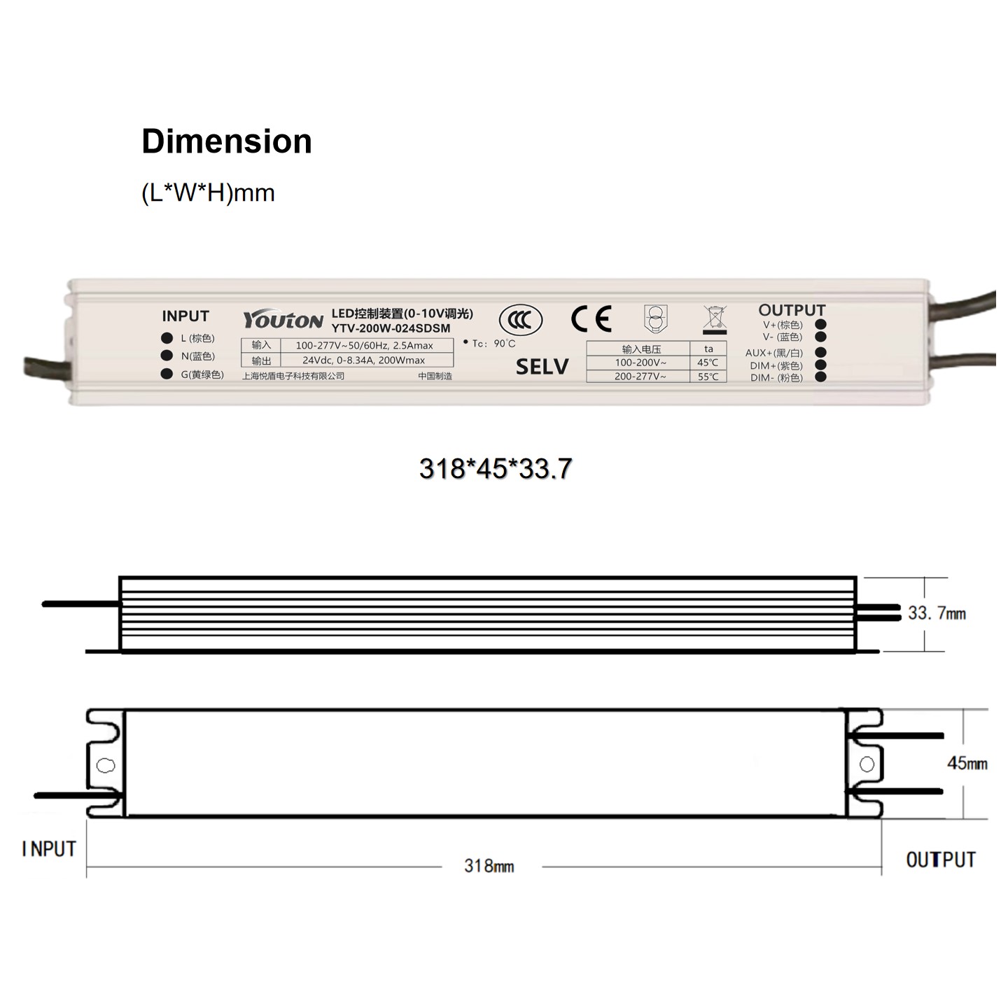 0-10V—体式恒压调光驱动, 兼有驱动和调光器的功能, 用于恒压灯具实现亮度的变化控制。