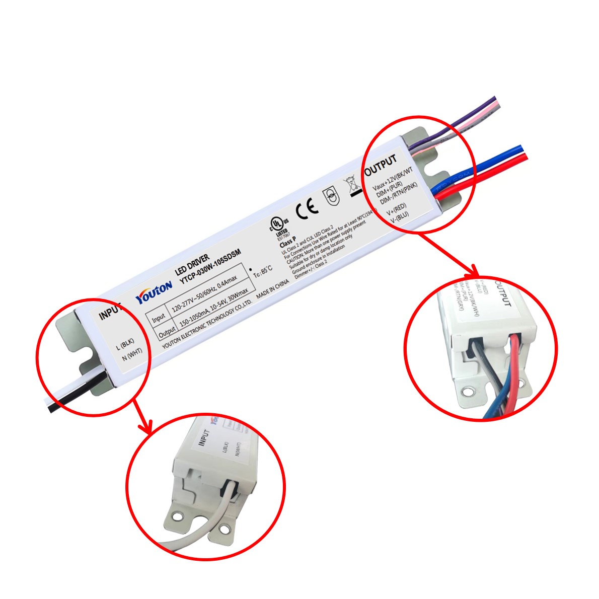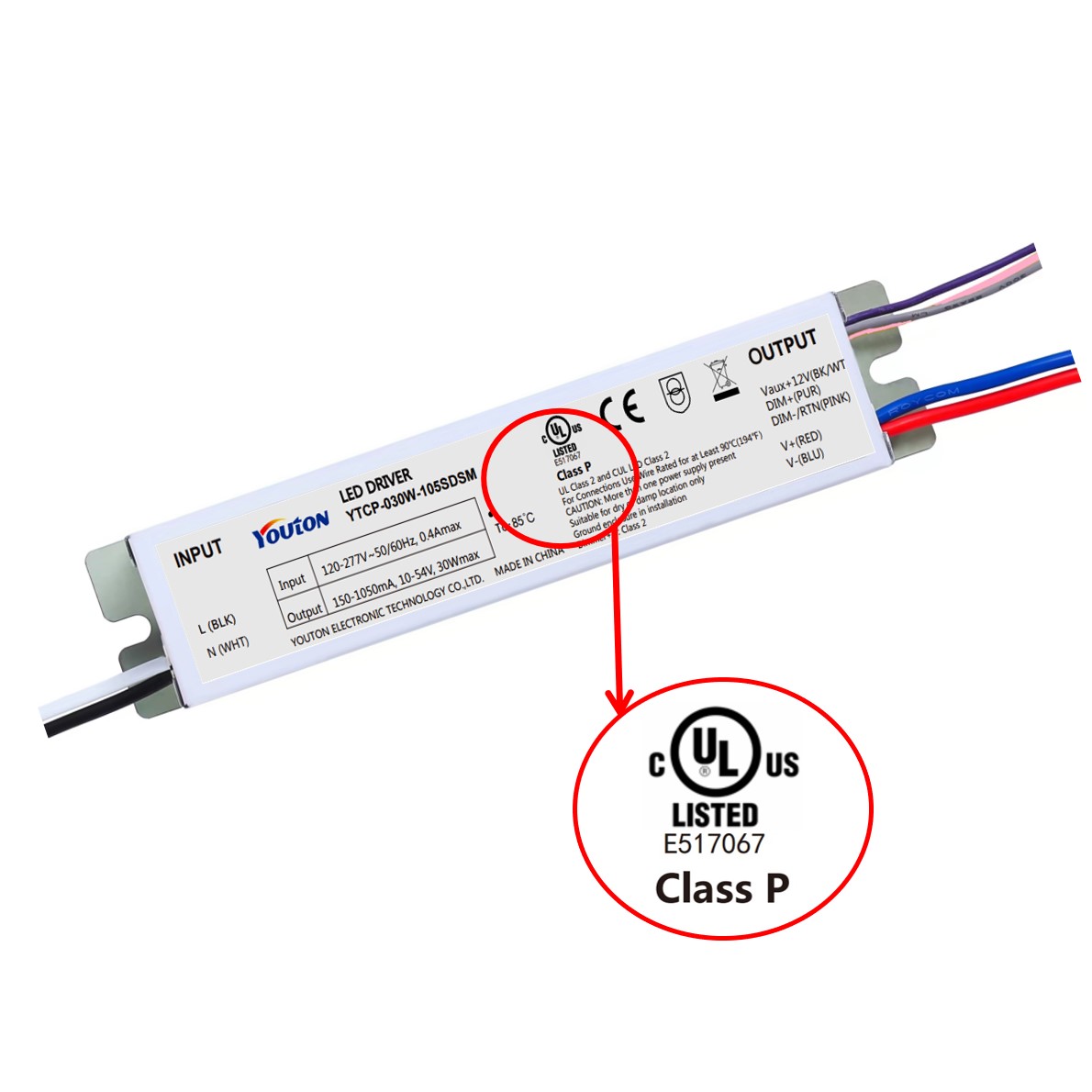 | ■ 全电压输入120-277VAC 2.5KV浪涌保护 | ■ 拥有UL8750 CLASS P /CLASS 2认证 |