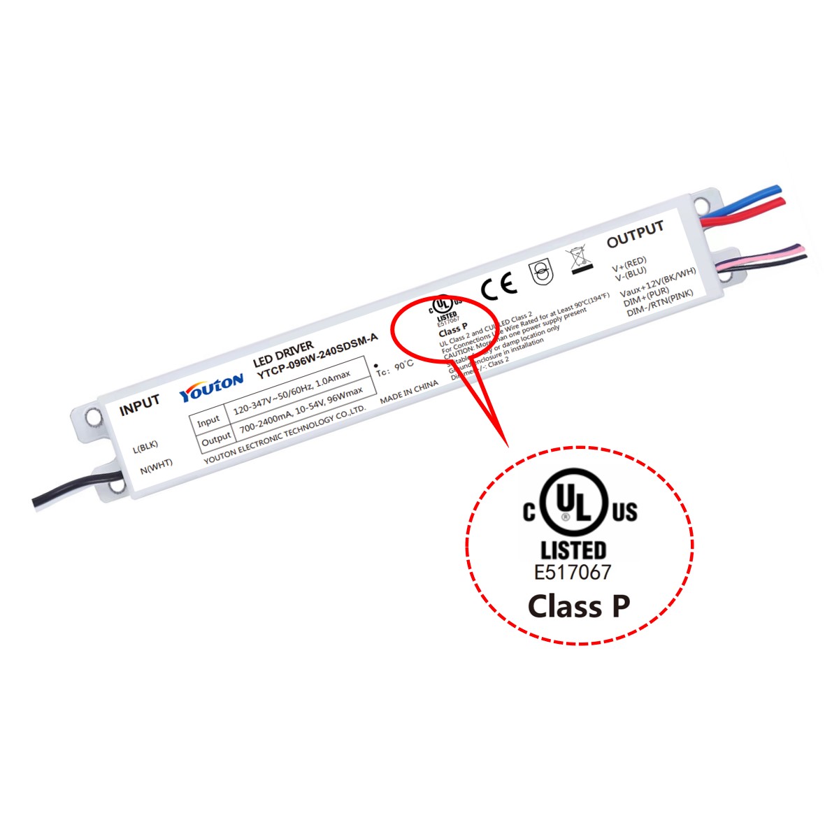 | ■ 全电压输入120-277VAC 2.5KV浪涌保护 | ■ 拥有UL8750 CLASS P /CLASS 2认证 |