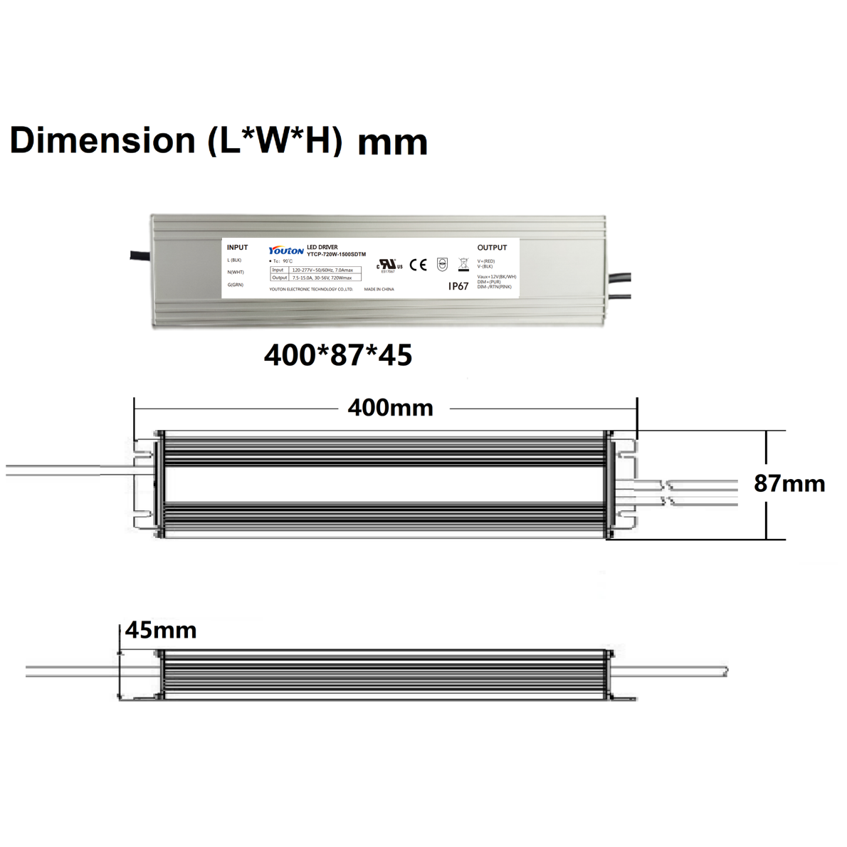 | 尺寸Size(L*W*H)mm: | 400*87*45 |